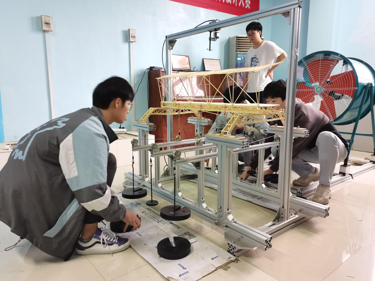 本次比赛共吸引十七支队伍参加,比赛现场,参赛队伍携带着精心制作的作品依次登台展示,并对模型进行安装加载,加载时出现任何构件的撕裂、断裂、脱胶、结构垮塌等情况,模型都将被认为加载失败。加载过程评委老师与队员们深入交流,并对参赛作品详细点评,指出作品设计亮点特色,同时也为参赛作品的设计提出了提升建议。经过激烈角逐,“小心超人队”、“开心超人队”、“稳如老狗队”三支队伍凭借优异的参赛作品脱颖而出,荣获一等奖。