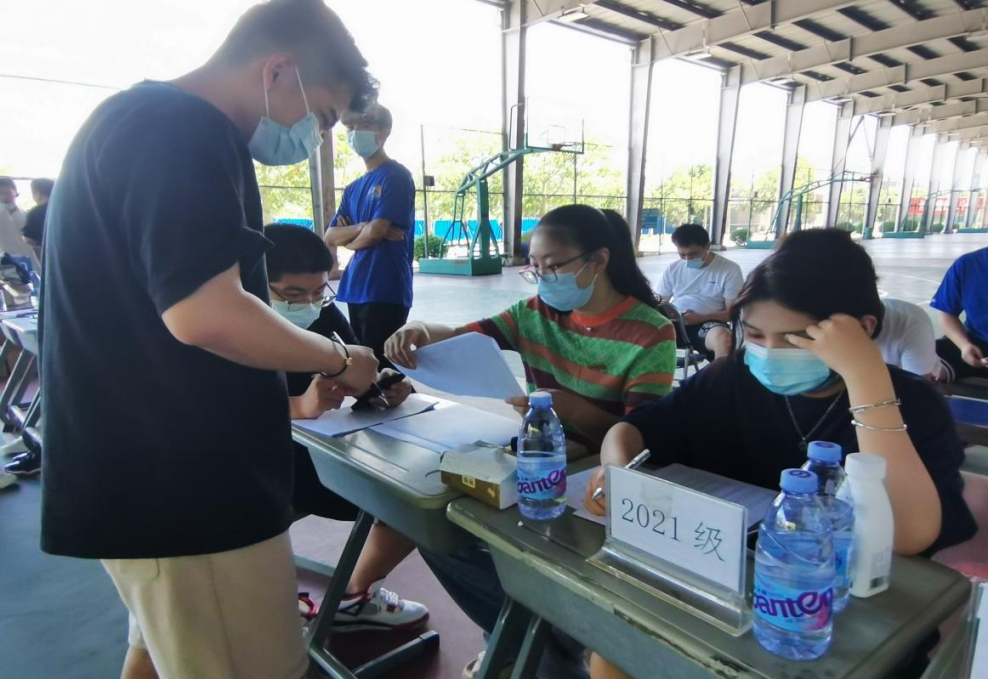 2022年9月3日上午,按照学校针对疫情期间的防疫要求,管理学院各年级研究生安全有序地返校。学院在旗山校区北区西门篮球场设置报到点,返校学生在校门口经身份核验、健康码查验、体温测量、行李消杀等流程后入校。
