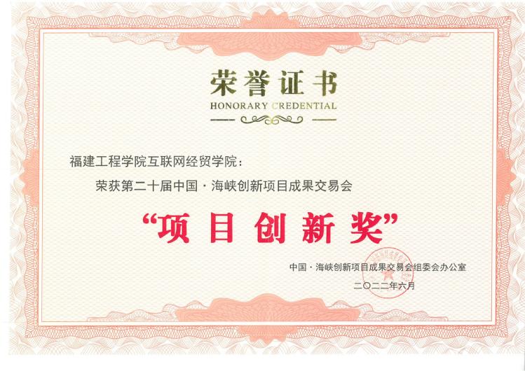 【互联网经贸学院】喜讯:互联网经贸学院荣获第二十届中国˙海峡创新项目成果交易会“项目创新奖”