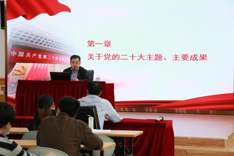 吴仁华以《以党的二十大精神为引领,奋进一流应用型大学建设新征程》为主题,紧紧围绕党的二十大的大会主题、主要成果和重大意义,过去五年工作和新时代十年的伟大变革,马克思主义中国化时代化新境界,中国式现代化,全面建设社会主义现代化国家的目标任务,坚持党的全面领导和全面从严治党,应对风险挑战等七个方面,结合党的二十大关于教育的重要部署,对党的二十大精神进行了全面、深入、系统的解读。