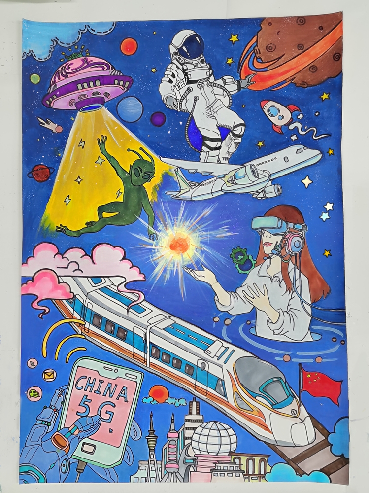 青年学子提起画笔,以画为媒,展现了十年来在中国共产党领导下中国取得的伟大成就,以饱满的热情、昂扬的精神状态宣传党的二十大精神,抒发了青年大学生的爱党爱国情怀。参赛作品主题鲜明、意蕴深刻、内容丰富。经过评选,共评选出一等奖1名、二等奖2名、三等奖3名、优秀奖4名。