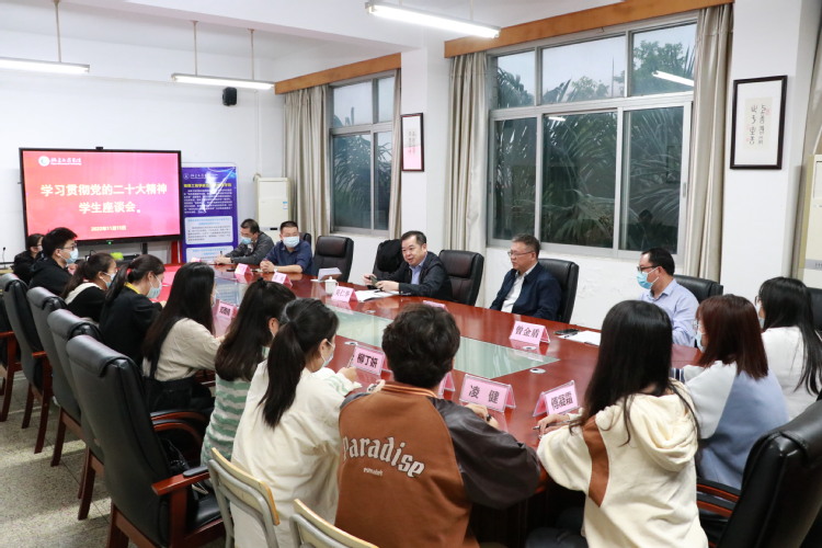 吴仁华书记认真聆听了学生代表们的发言。他强调,党的二十大报告是党团结带领人民全面建设社会主义现代化国家、向第二个百年奋斗目标进军的政治宣言和行动纲领,同学们要在全面学习、全面把握、全面落实上下功夫;要学深悟透,通过学习党的二十大精神,坚定理想信念,坚定不移听党话跟党走;要始终牢记人民至上,始终坚持以人民为中心的发展理念,怀抱梦想、脚踏实地,练就过硬本领。