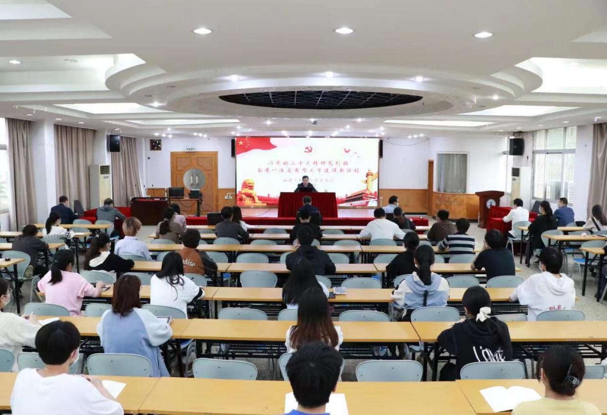 学院邀请校党委书记吴仁华来院开展党的二十大精神宣讲会1场,主动参加学校安排的党的二十大精神培训学习会2场;学院党委以党委会会议、中心组学习、党支部书记例会、教职工大会等形式组织集中学习党的二十大精神4次;学院党委班子成员开展理论宣讲4场、学习座谈会5场;各党支部结合党日活动、理论学习,先后开展各类学习30多场;学院理论学习社开展各类学习6场,学院团委结合第二课堂,组织开展“学习二十大 永远跟党走 奋进新征程”为主题的干部培训、团日活动共计120多场次,开展“青春献礼二十大”主题征文活动、创意绘画大赛、书法比赛、主持人大赛、等各类文体活动10多场次。