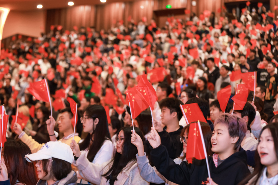 音乐会在古筝齐奏《日出东方》的乐声中拉开序幕。《黄河大合唱》《弹起我心爱的土琵琶》等经典抗战题材作品,以激昂旋律回溯民族救亡图存的峥嵘岁月,讴歌中华儿女众志成城抵御外侮的壮烈史诗;《钢铁洪流进行曲》《爱国之恋》《如愿》《我爱你中国》等一组新时代曲目,以宏大的爱国主题表达,展现了新时代青年在实现中华民族伟大复兴历史进程中使命担当。